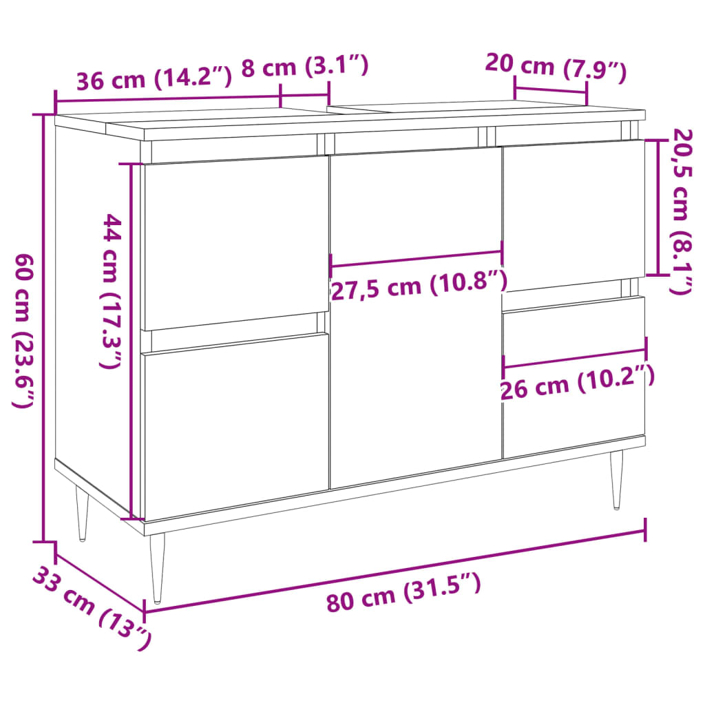 Dulap pentru baie, lemn vechi, 80x33x60 cm, lemn prelucrat
