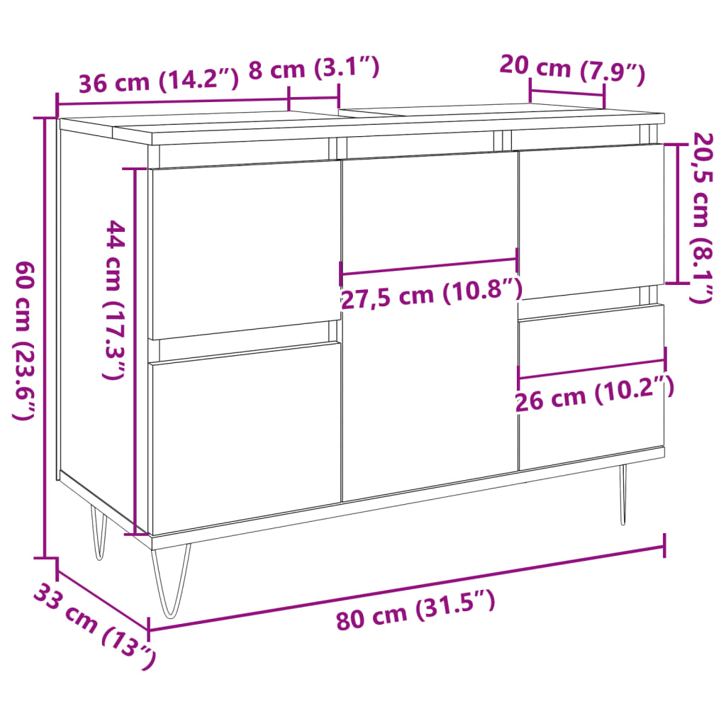 Dulap pentru baie, lemn vechi, 80x33x60 cm, lemn prelucrat