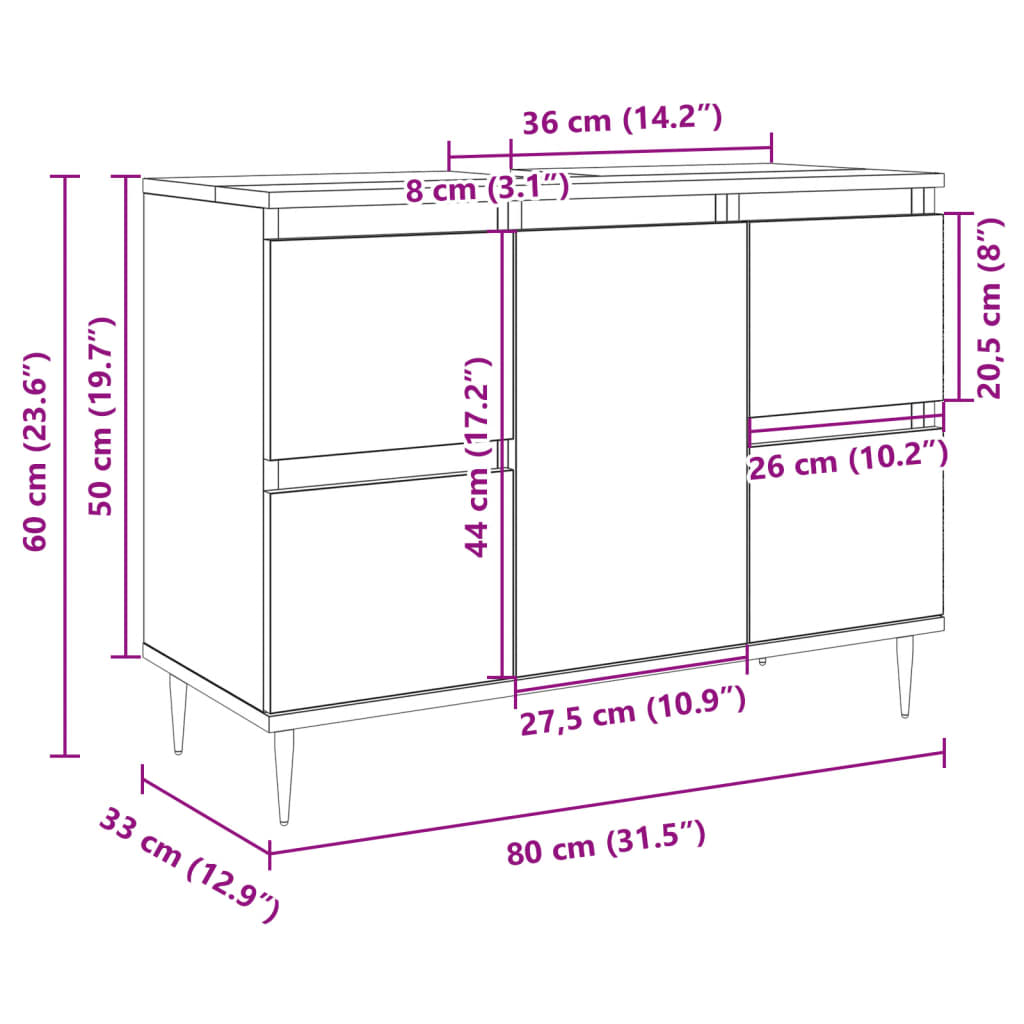 Dulap pentru baie, stejar sonoma, 80x33x60 cm, lemn compozit