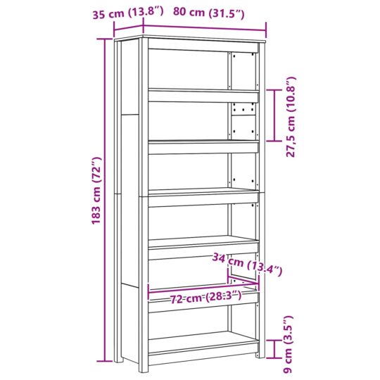 Dulap pentru cărți Maroniu cerat 80 x 35 x 183 cm