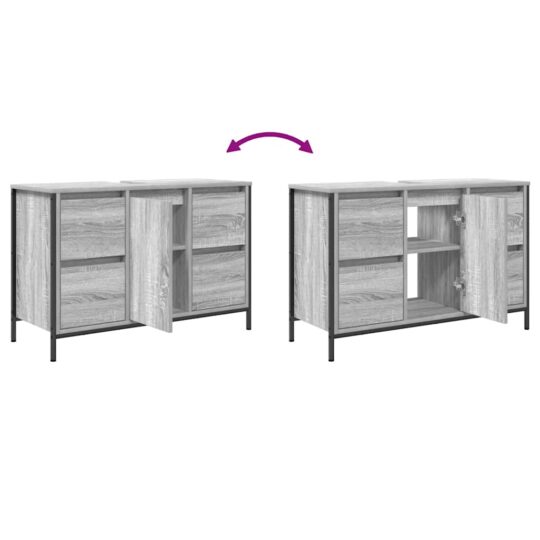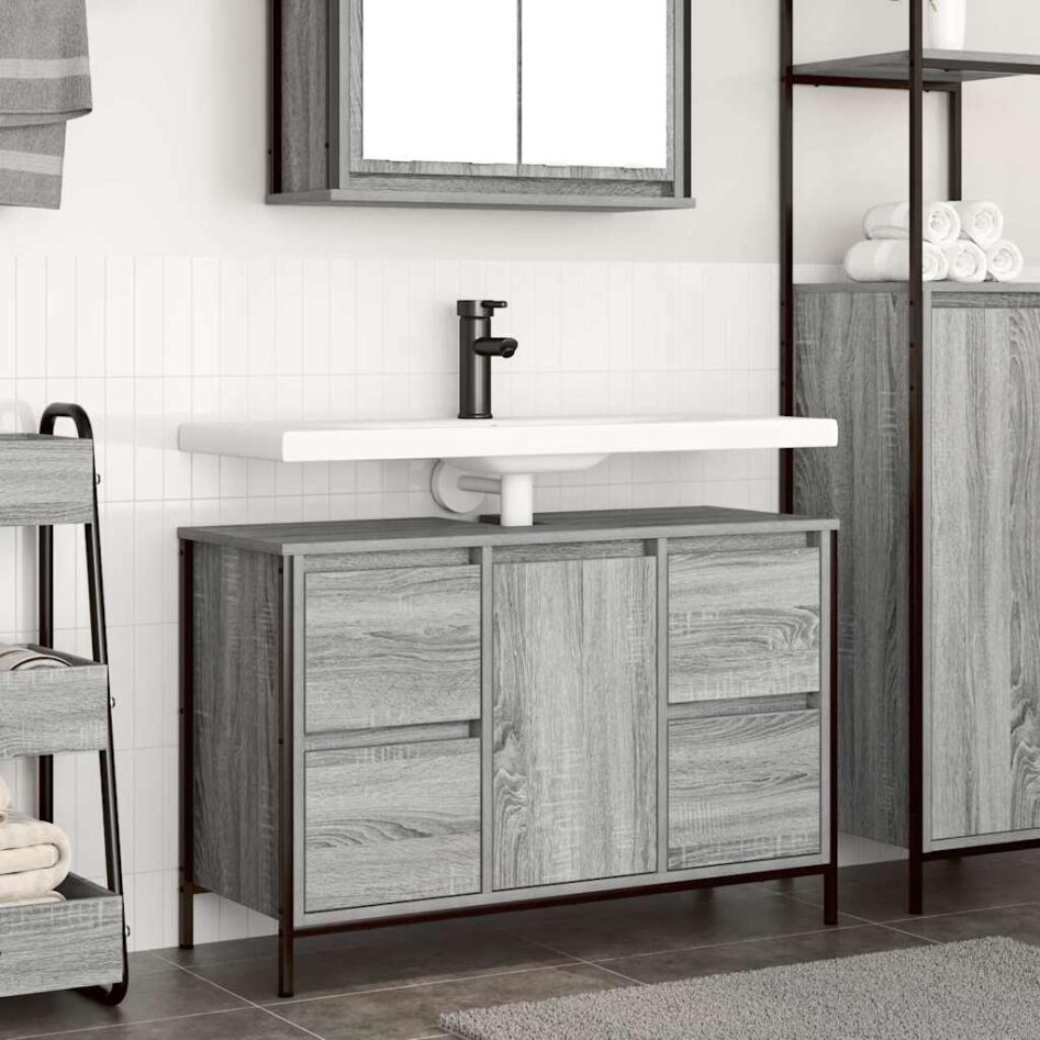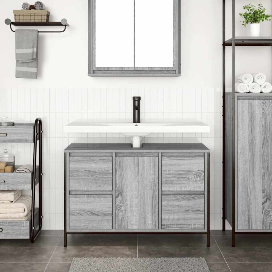 Dulap pentru chiuvetă cu sertare Gri Sonoma 90×34,5×60 cm