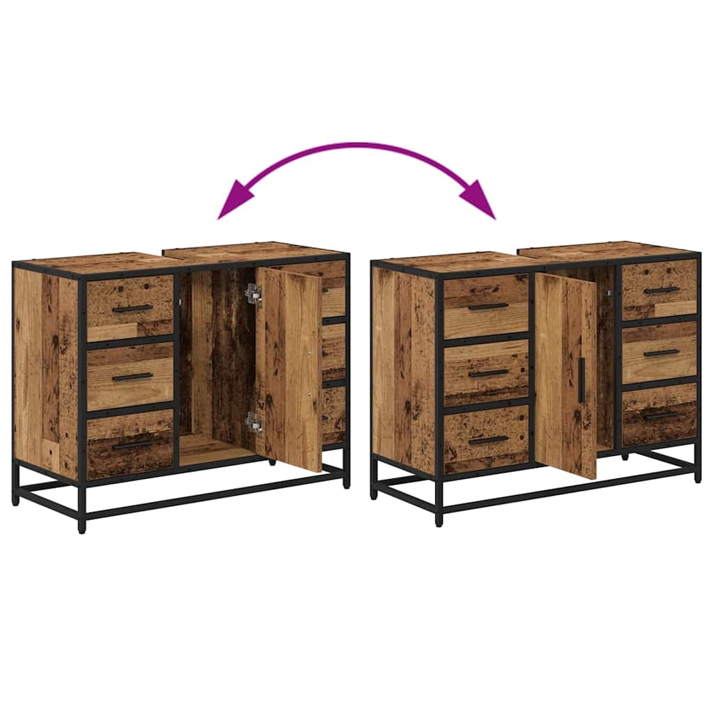 Dulap pentru Chiuveta de Baie cu ușă Lemn vechi 80 x 33 x 60 cm