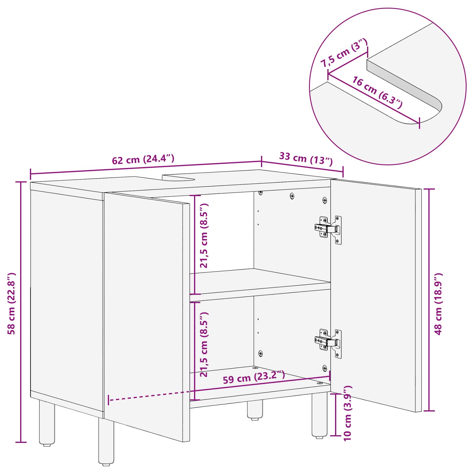 Acest cabinet de chiuvetă modern aduce un stil elegant și chic, care se potrivește perfect în orice baie. Cu un design montat pe perete care economisește spațiu, creează o atmosferă sofisticată și modernă. E fabricat din materiale de calitate, având o textură elegantă și o combinație clasică de alb și negru, adăugând un aspect minimalist care se potrivește perfect pentru interiorul contemporan. Imaginează-ți că l-ai avea în baia ta, ridicând atât funcționalitatea cât și decorul prin atractivitatea lui elegantă.