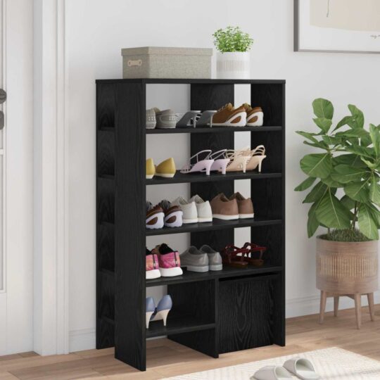 Dulap pentru pantofi cu raft 2 pcs Stejar Negru Lemn compozit