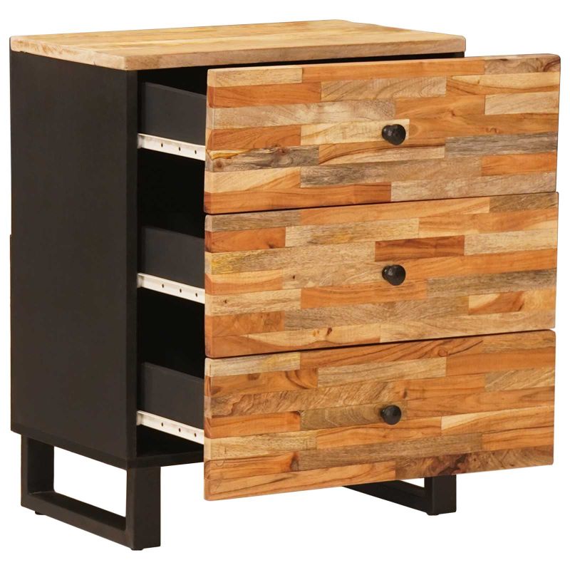 - Materiale: Noptiera asta din lemn masiv de mango arată super bine și e foarte rezistentă. Nodurile de lemn îi dau o textură faină, iar soliditatea ei înseamnă că va rezista la utilizarea zilnică. Componentele metalice sporesc durabilitatea, făcând-o să reziste în timp. Combinația de lemn și metal e un exemplu clar de măiestrie.
