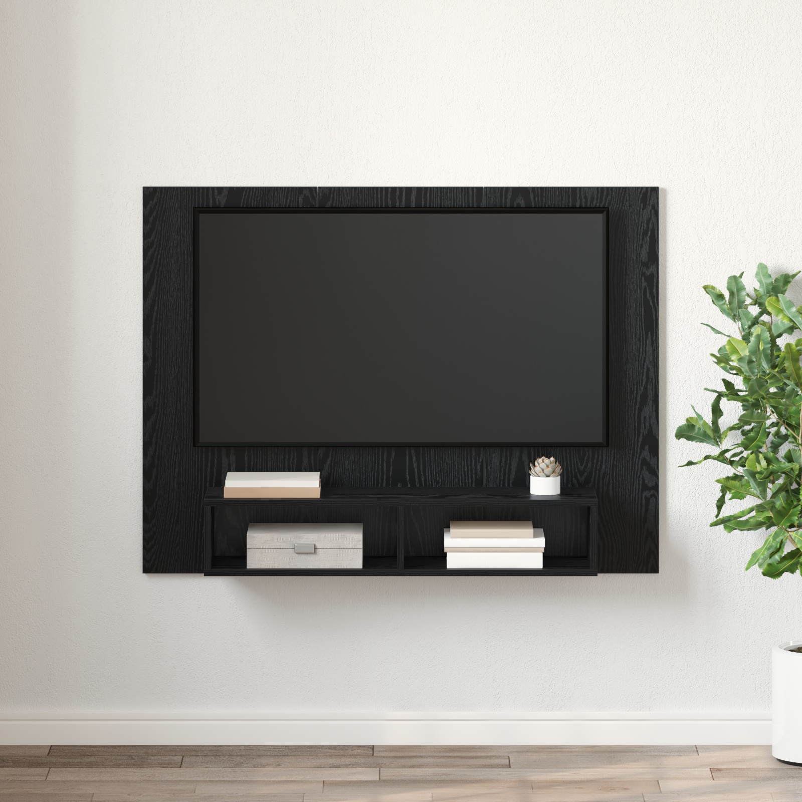 Cabinetul TV montat pe perete cu depozitare e combinația perfectă de rusticitate și utilitate, făcând orice cameră de zi să fie atrăgătoare. Designul său modular cu rafturi adaugă stil și organizare, cu un finisaj texturat care iese în evidență. Transformă un perete într-o atracție, păstrând lucrurile în ordine pentru stilul de viață de azi. Cu forma lui clasică dreptunghiulară, se potrivește cu diferite stiluri, oferindu-ți un mix fain de estetică și depozitare utilă.