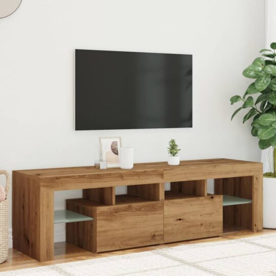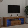 Dulap TV cu LED stejar artizanal 140×36,5×40 cm lemn prelucrat
