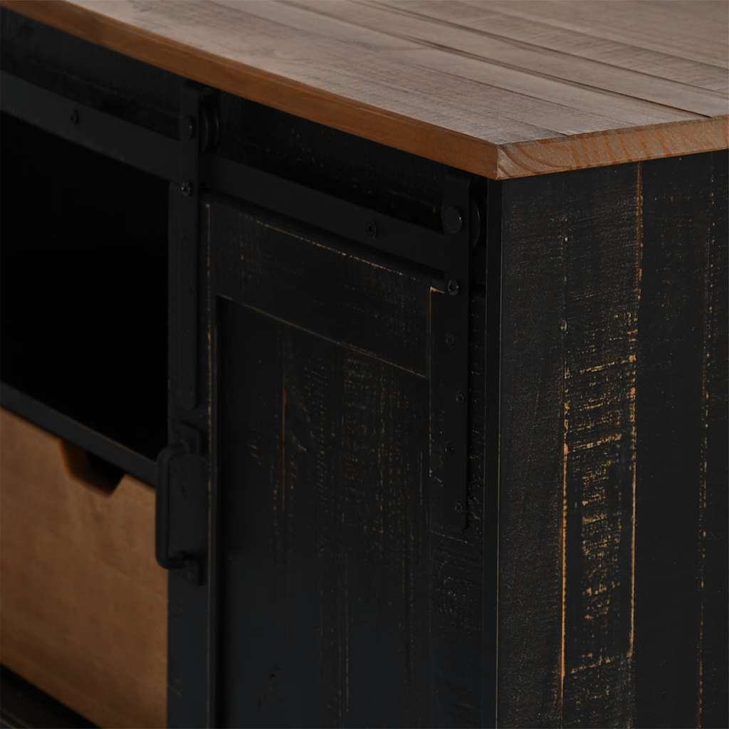 Dulap TV HALDEN cu uşă glisantă negru 110x40x60 cm lemn masiv