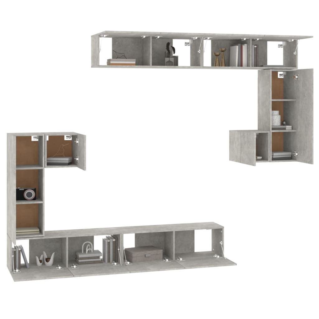 Dulap TV montat pe perete, gri beton, lemn prelucrat