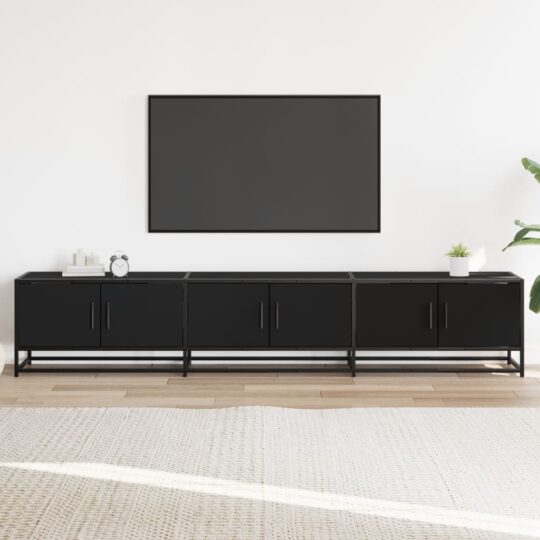Dulap TV, negru, 210x35x41 cm, lemn prelucrat