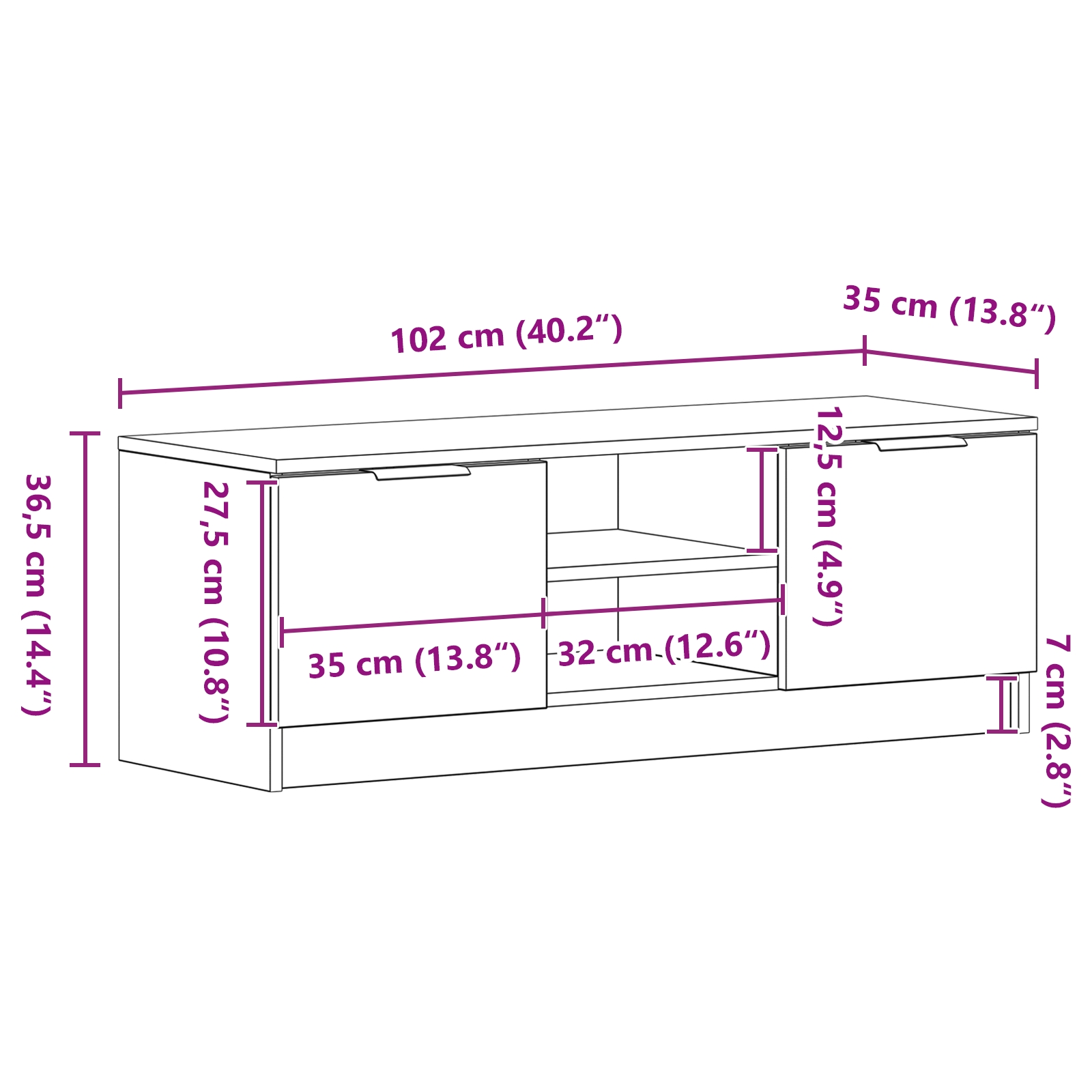 - Formă dreptunghiulară versatilă Forma sa dreptunghiulară și dimensiunile (102x35x36.5 cm) înseamnă că poate face mult mai mult decât să susțină un TV. Poate să fie și un bufet sau un loc de depozit suplimentar, potrivindu-se în tot felul de locuri și servind diverse scopuri.