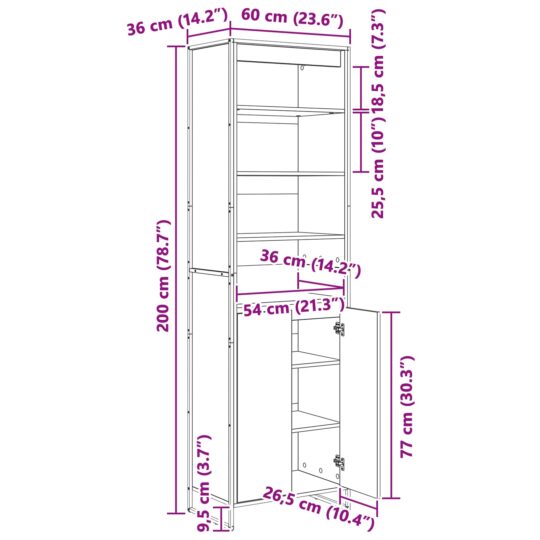 - Dimensiuni generale: 60 x 36 x 200 cm (L x l x î)