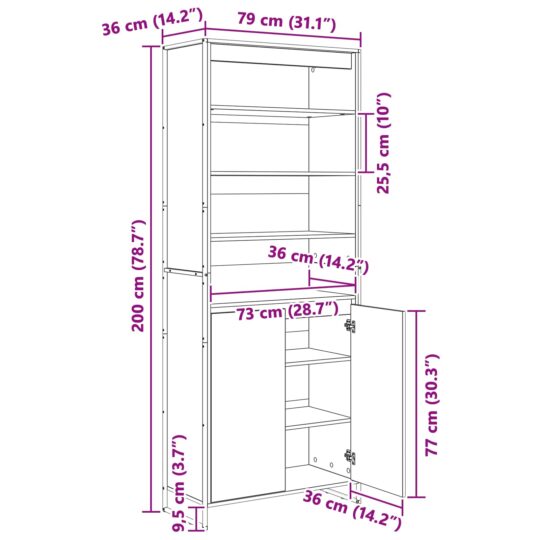 • Dimensiuni generale: 79 x 36 x 200 cm (L x l x î)