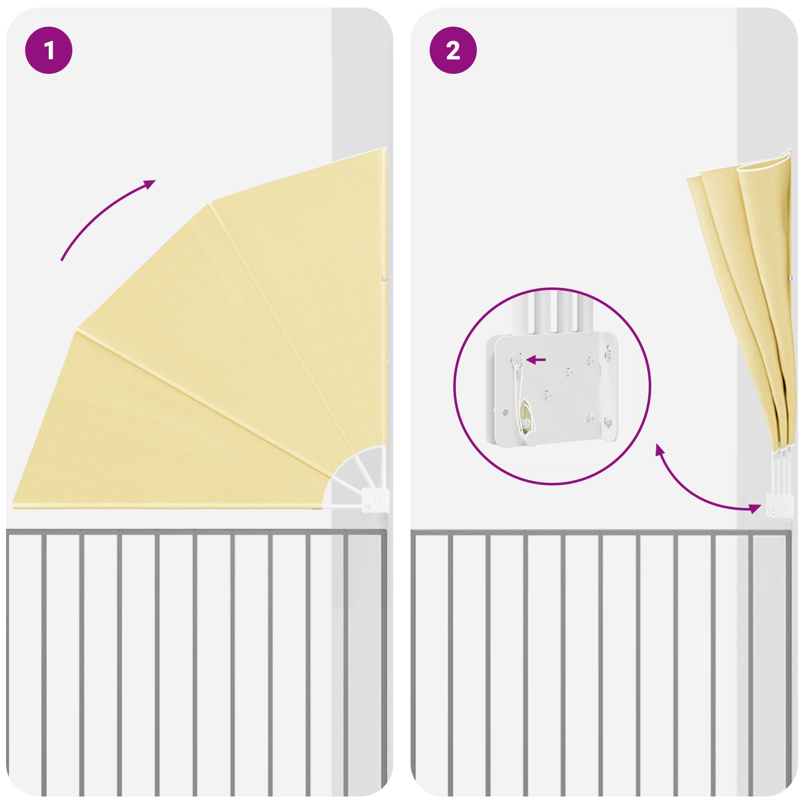 Ecranul ăsta de intimitate pentru balcon e o adăugare elegantă pentru zona ta de afară. Îți dă intimitate și umbră, iar designul lui modern se potrivește perfect cu casele de astăzi. Oferă atât un aspect practic, cât și estetic pentru balcoane, terase și grădini. Forma de evantai a ecranului poate fi ajustată manual ca să îți ofere exact câtă umbră vrei, păstrând lucrurile confortabile și primitoare. Materialul e rezistent la UV, deci va dura mult timp, protejându-te de soare în timp ce te bucuri de aer liber.