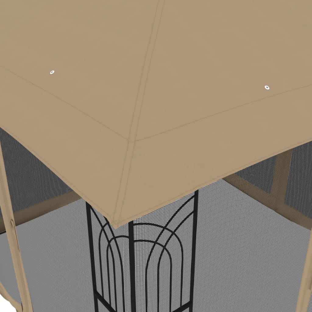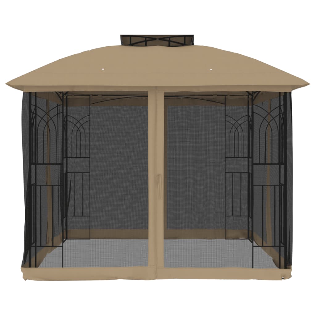 Foișor cu acoperiș dublu/pereți din plasă taupe 2,94×2,94m oțel