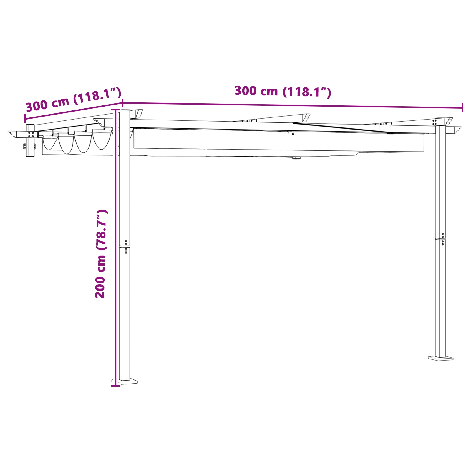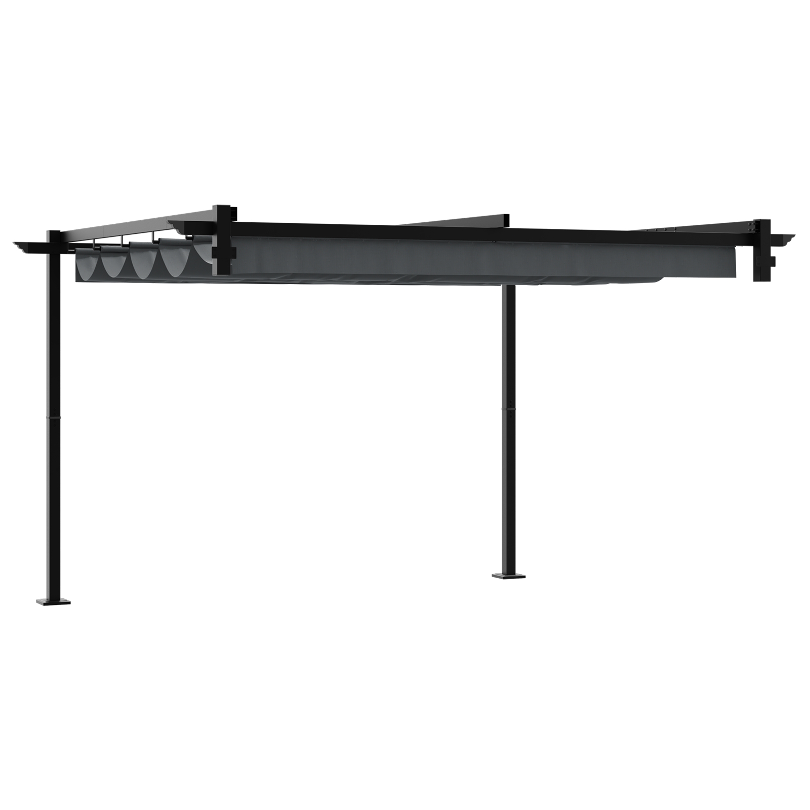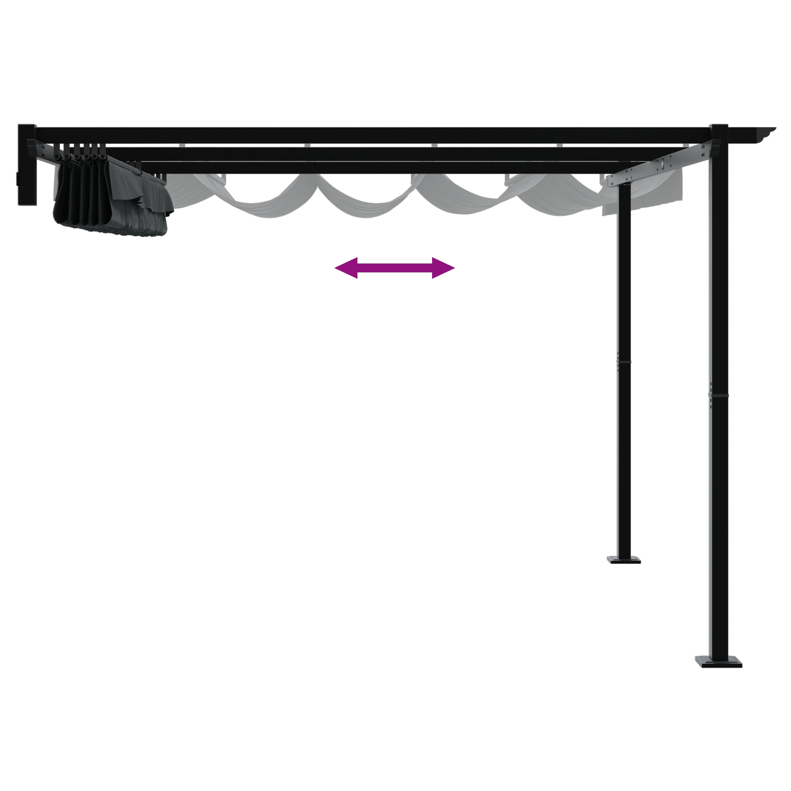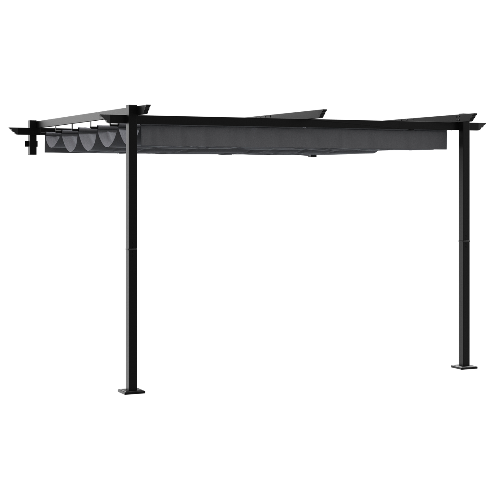 - Funcția Retractabilă: Punctul forte al acestui foișor este acoperișul său retractabil, care oferă umbră ajustabilă la comanda ta. Extinde acoperișul pentru protecție totală sau retrage-l pentru o vedere a cerului liber. Această flexibilitate îmbunătățește atât plăcerea cât și protecția pe parcursul zilei.