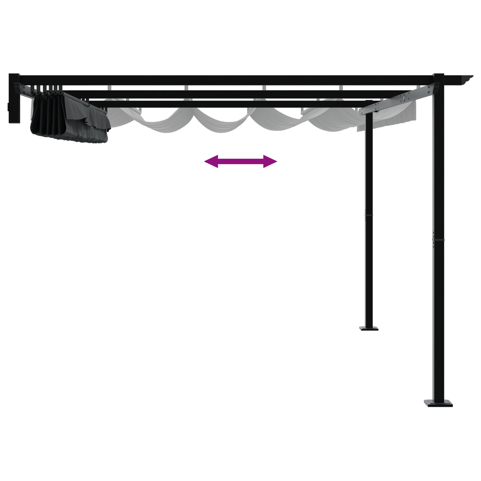 - Funcția Retractabilă: Punctul forte al acestui foișor este acoperișul său retractabil, care oferă umbră ajustabilă la comanda ta. Extinde acoperișul pentru protecție totală sau retrage-l pentru o vedere a cerului liber. Această flexibilitate îmbunătățește atât plăcerea cât și protecția pe parcursul zilei.