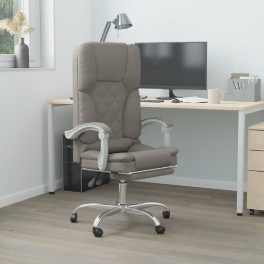 Fotoliu de birou rabatabil cu masaj, gri taupe, textil