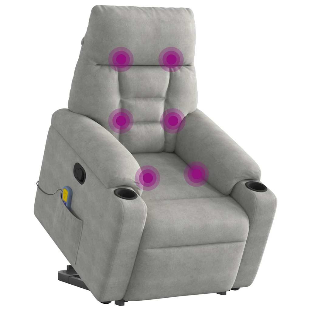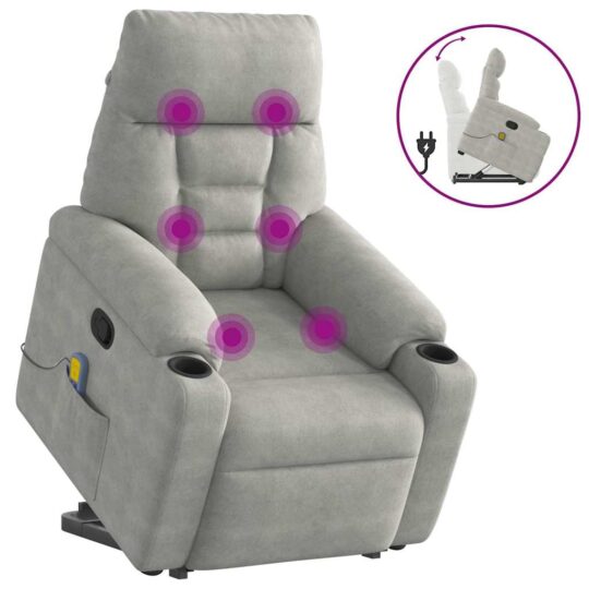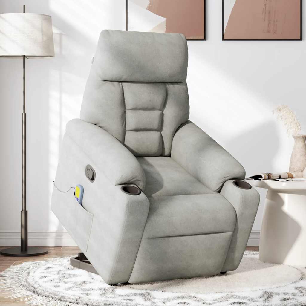 Fotoliu de masaj rabatabil cu ridicare, gri deschis, microfibră