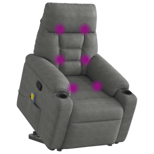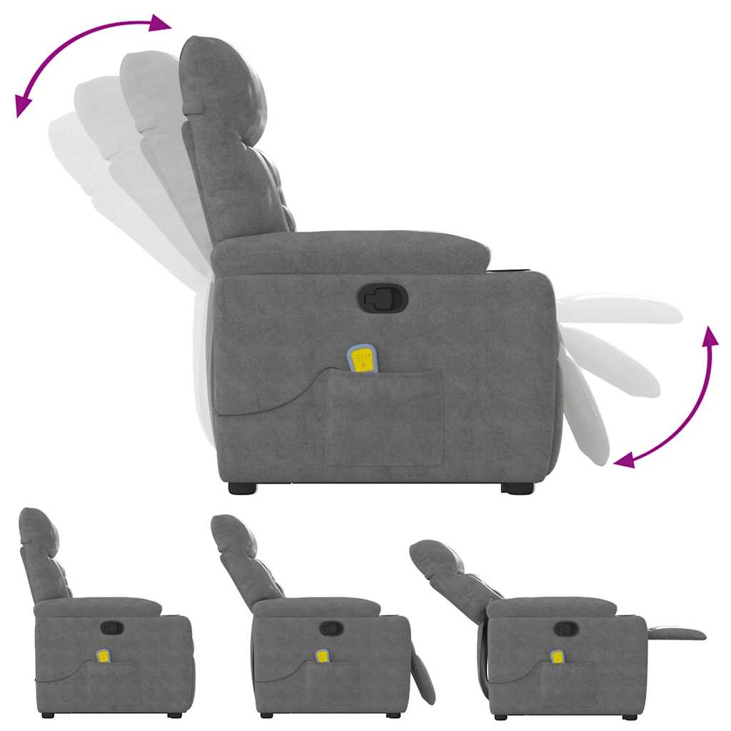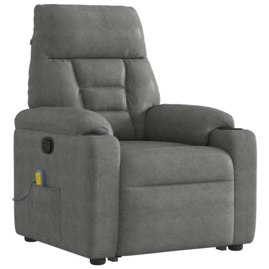 Fotoliu de masaj rabatabil cu ridicare, gri închis, microfibră