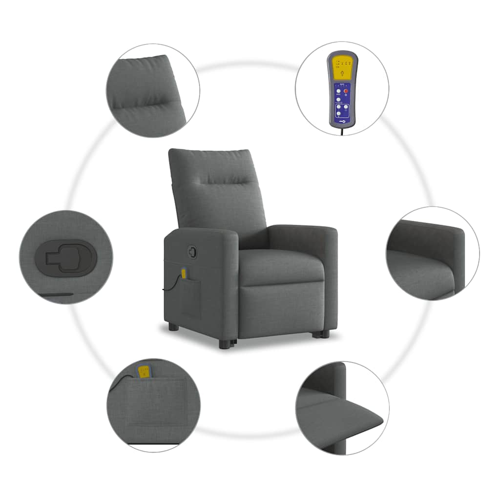Fotoliu de masaj rabatabil cu ridicare, gri închis, textil