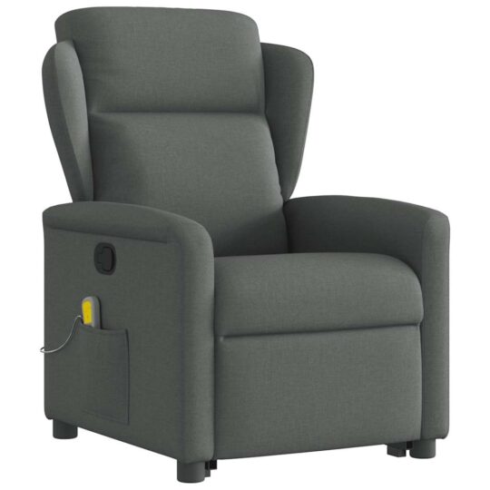 Fotoliu de masaj rabatabil cu ridicare, gri închis, textil