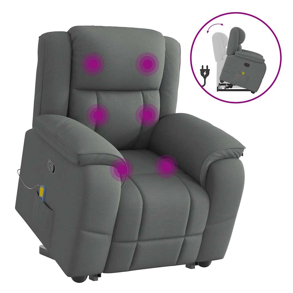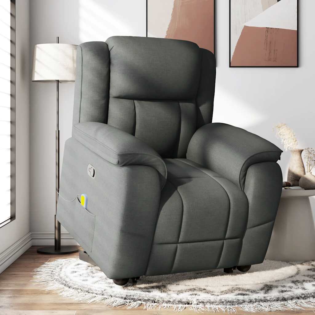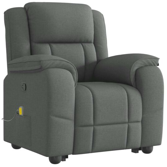 Fotoliu de masaj rabatabil cu ridicare, gri închis, textil