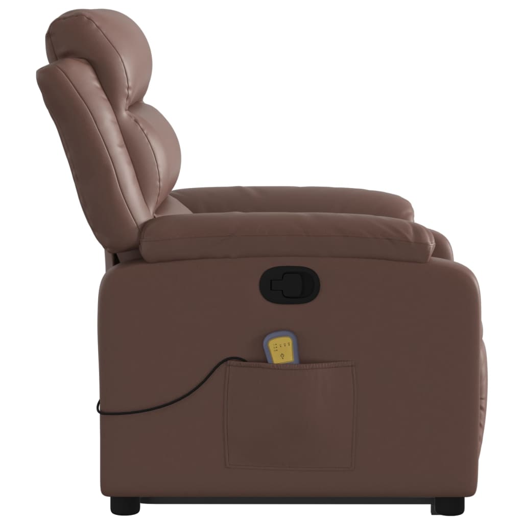 Fotoliu de masaj rabatabil cu ridicare, maro, piele ecologică