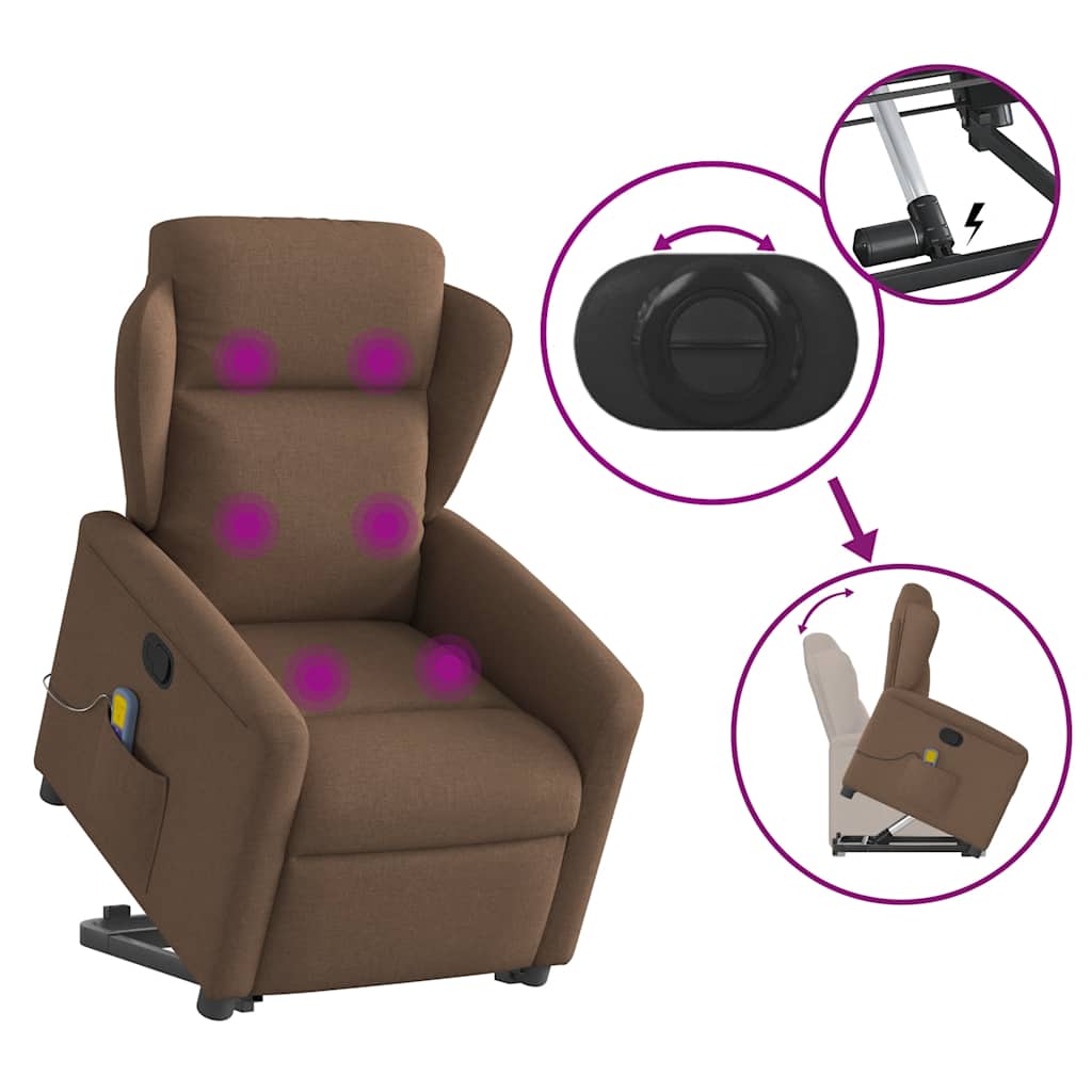 Fotoliu de masaj rabatabil cu ridicare, maro, textil