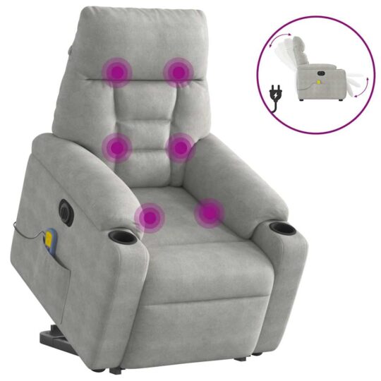 Fotoliu de masaj rabatabil electric cu ridicare gri, microfibră