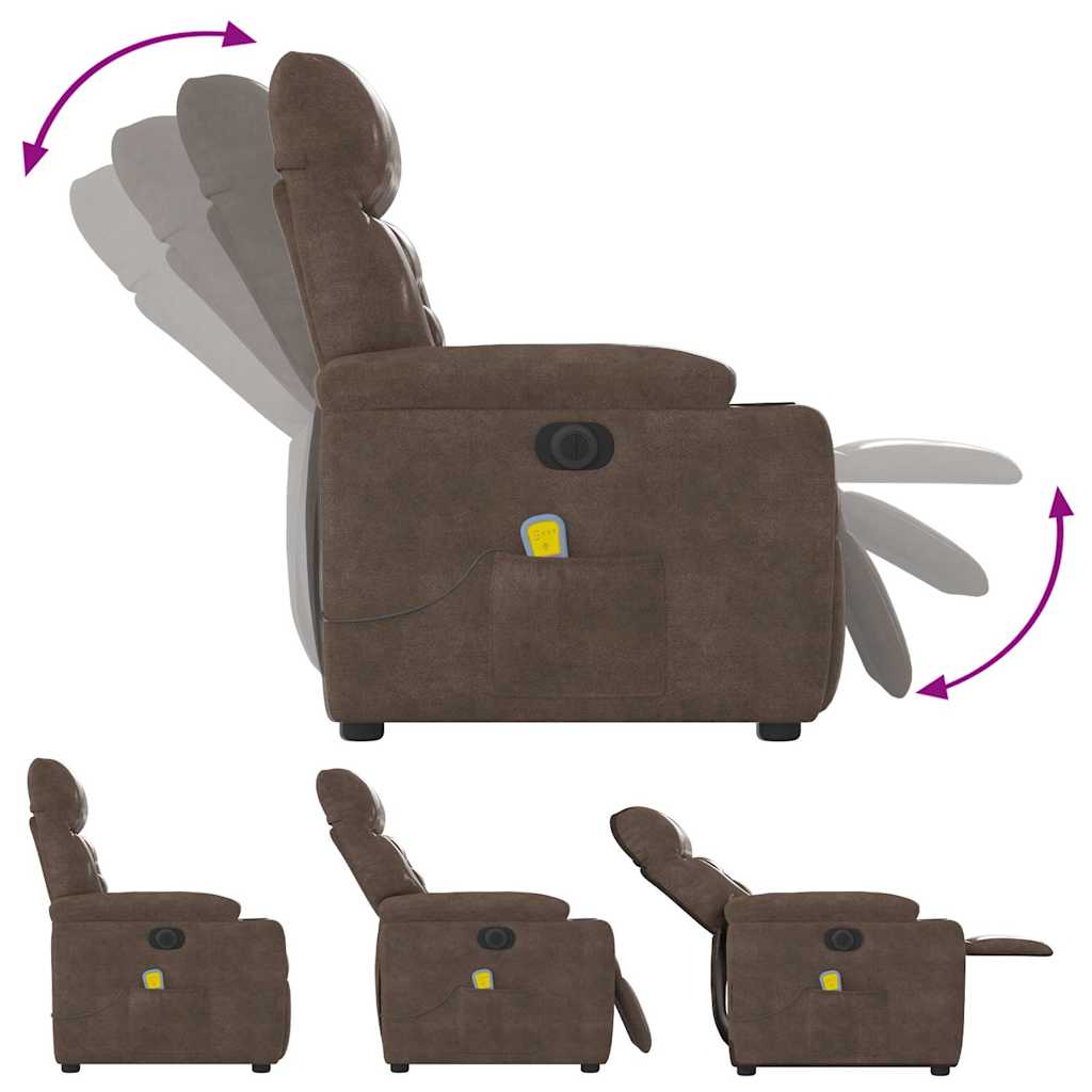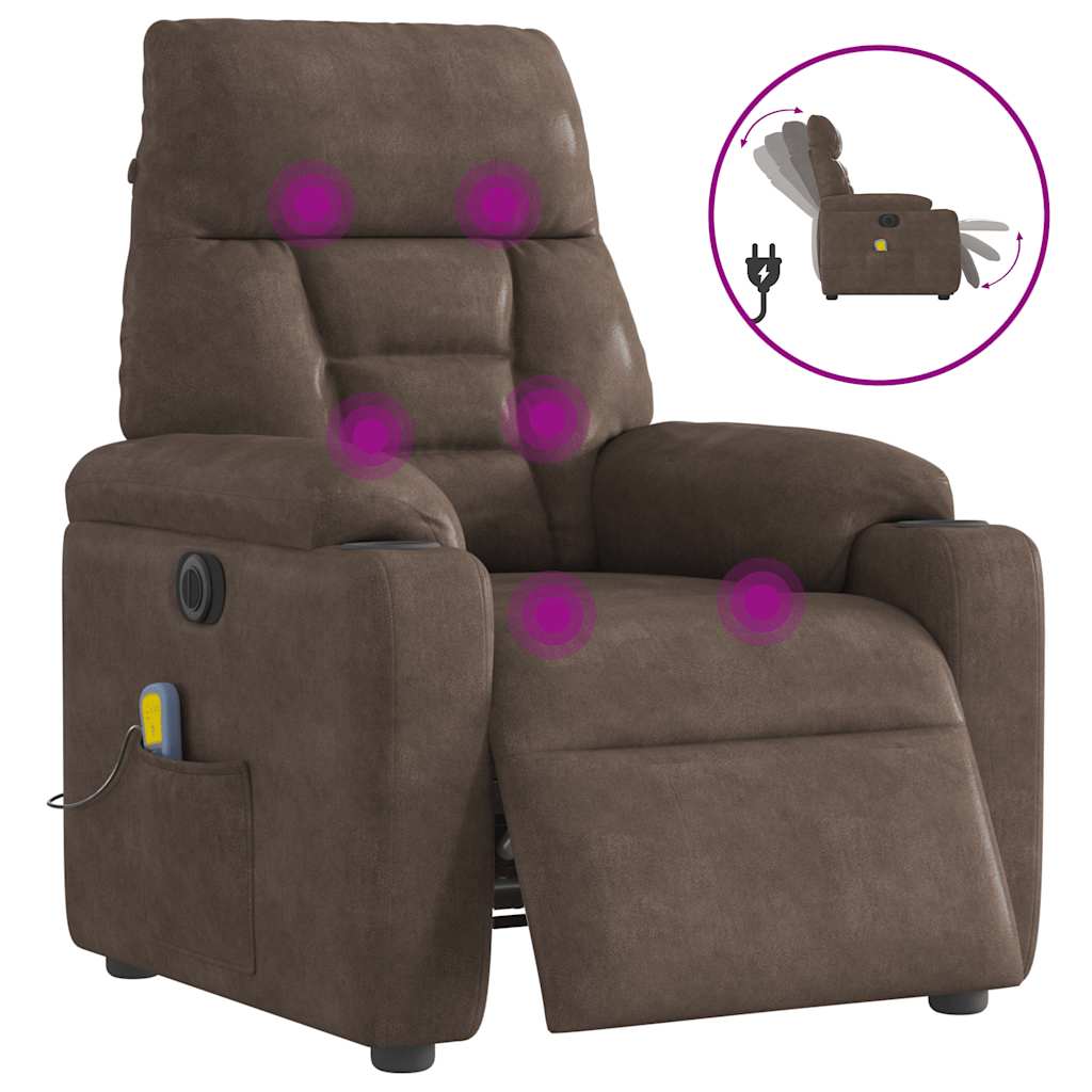 Fotoliu de masaj rabatabil electric, maro, microfibră