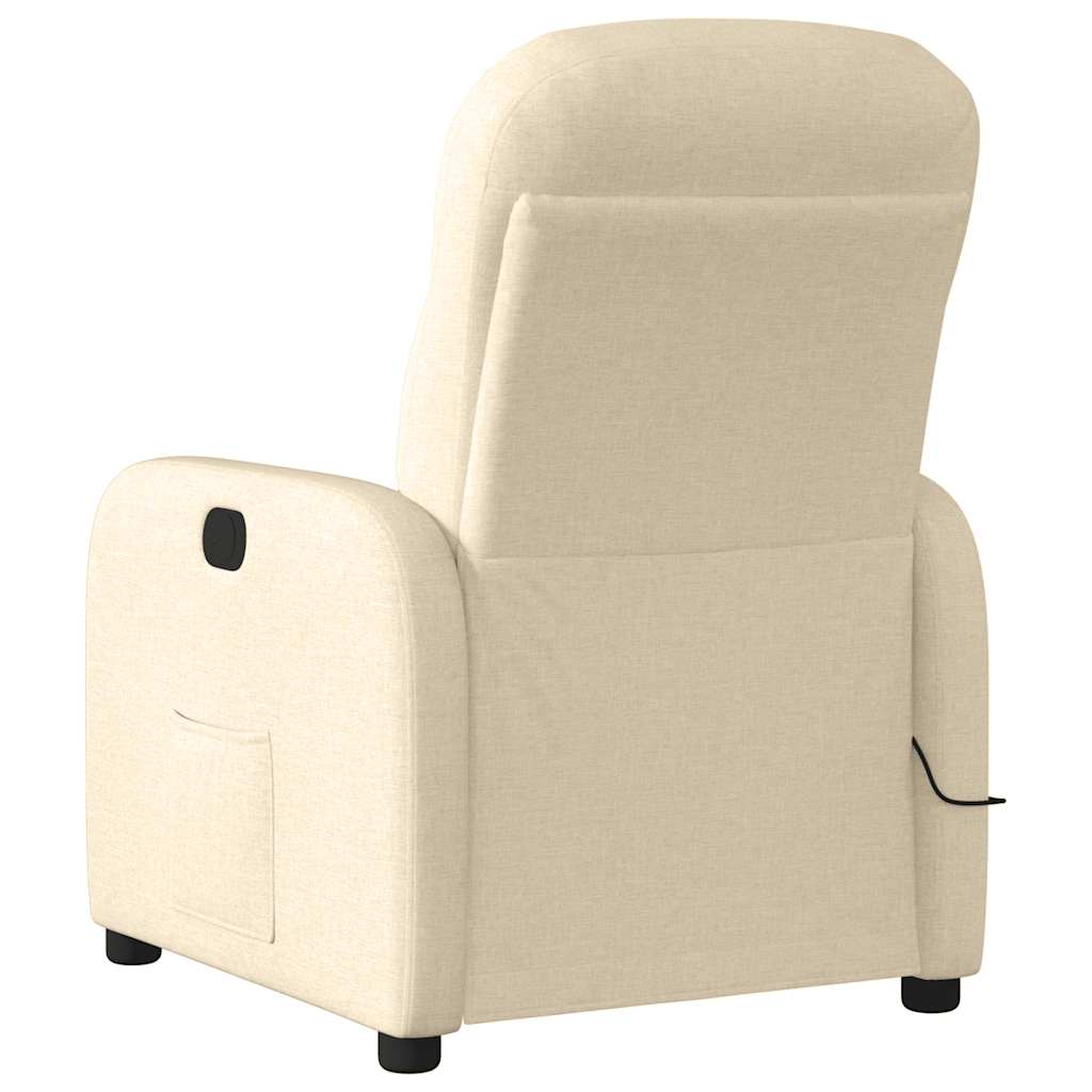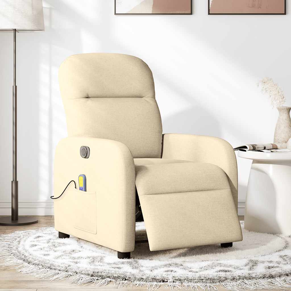 Fotoliu electric de masaj rabatabil, crem, textil