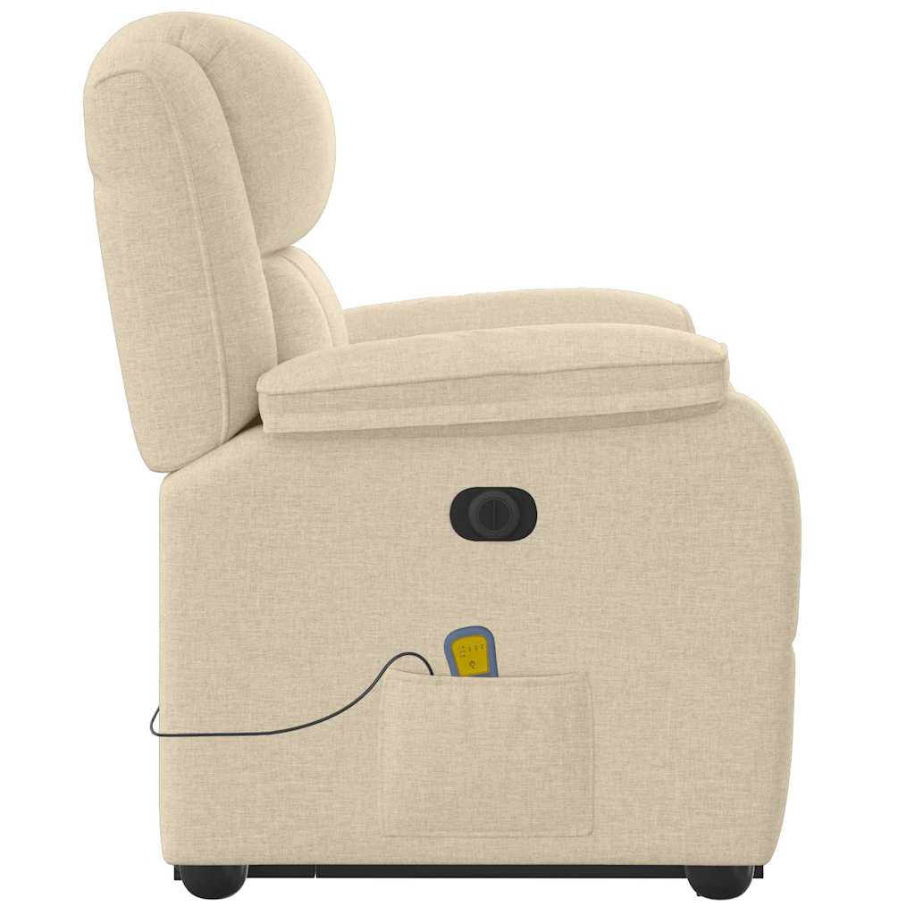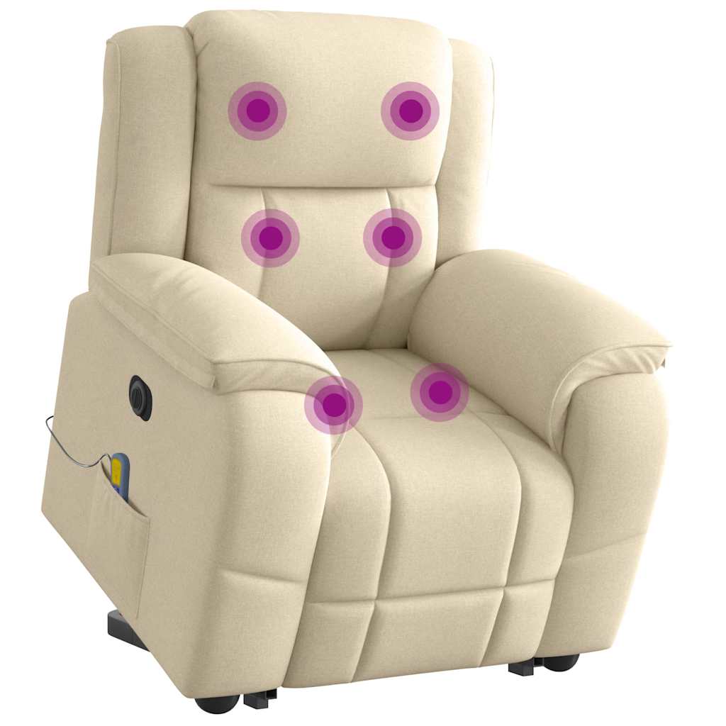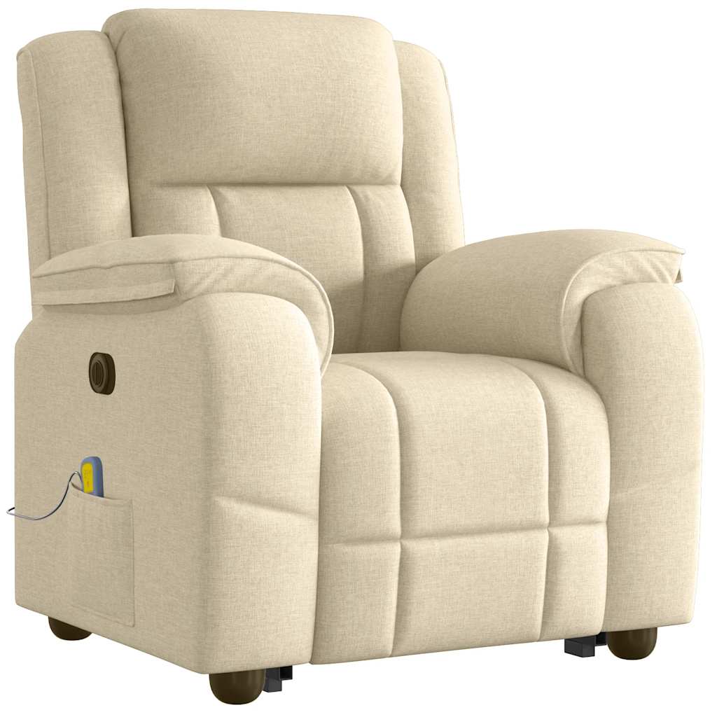 Fotoliu electric de masaj rabatabil cu ridicare, crem, textil