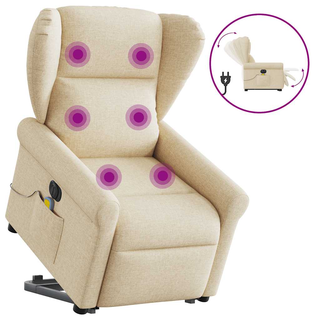 Fotoliu electric de masaj rabatabil cu ridicare, crem, textil