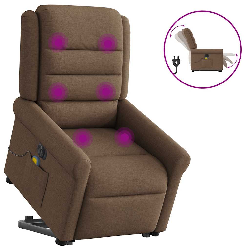 Fotoliu electric de masaj rabatabil cu ridicare, maro, textil