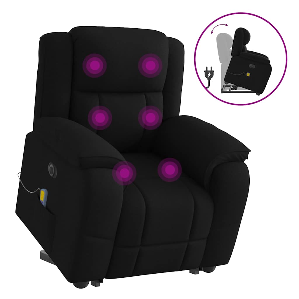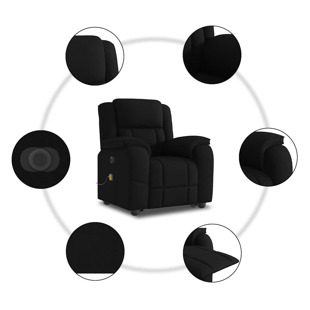 Fotoliu electric de masaj rabatabil cu ridicare, negru, textil