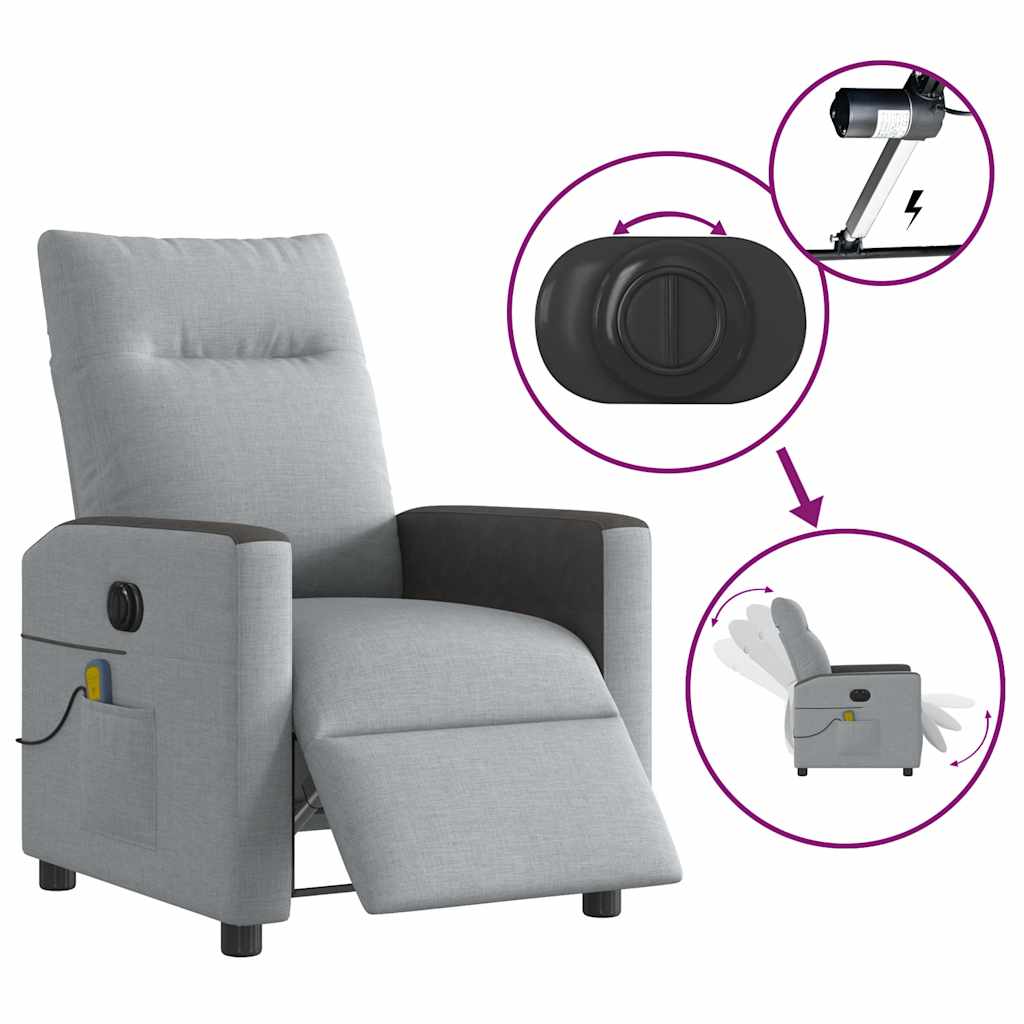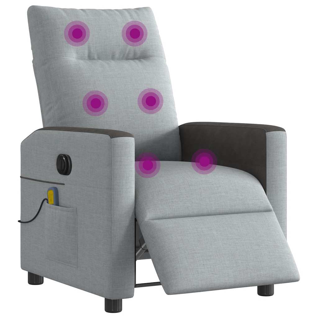 Fotoliu electric de masaj rabatabil, gri deschis, microfibră