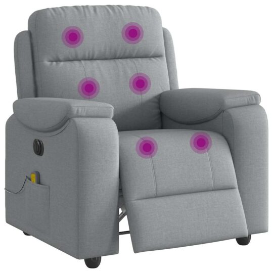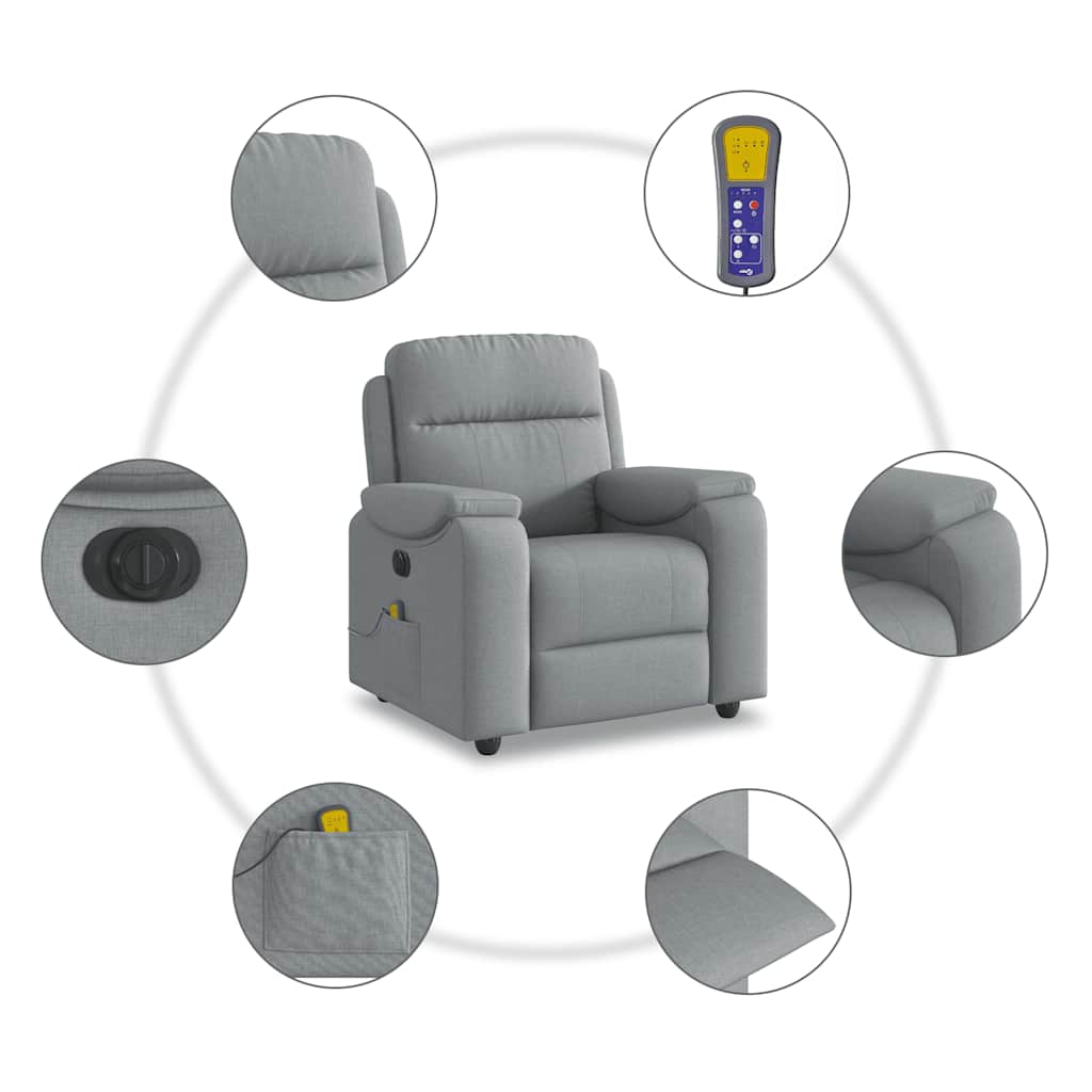 Fotoliu electric de masaj rabatabil, gri deschis, microfibră