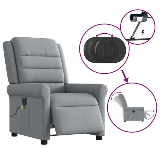 Fotoliu electric de masaj rabatabil, gri deschis, microfibră