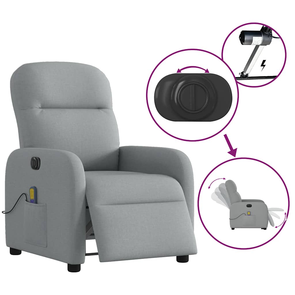 Fotoliu electric de masaj rabatabil, gri deschis, microfibră