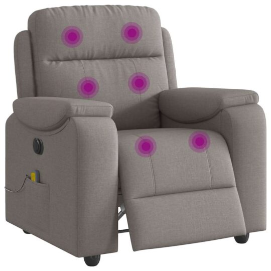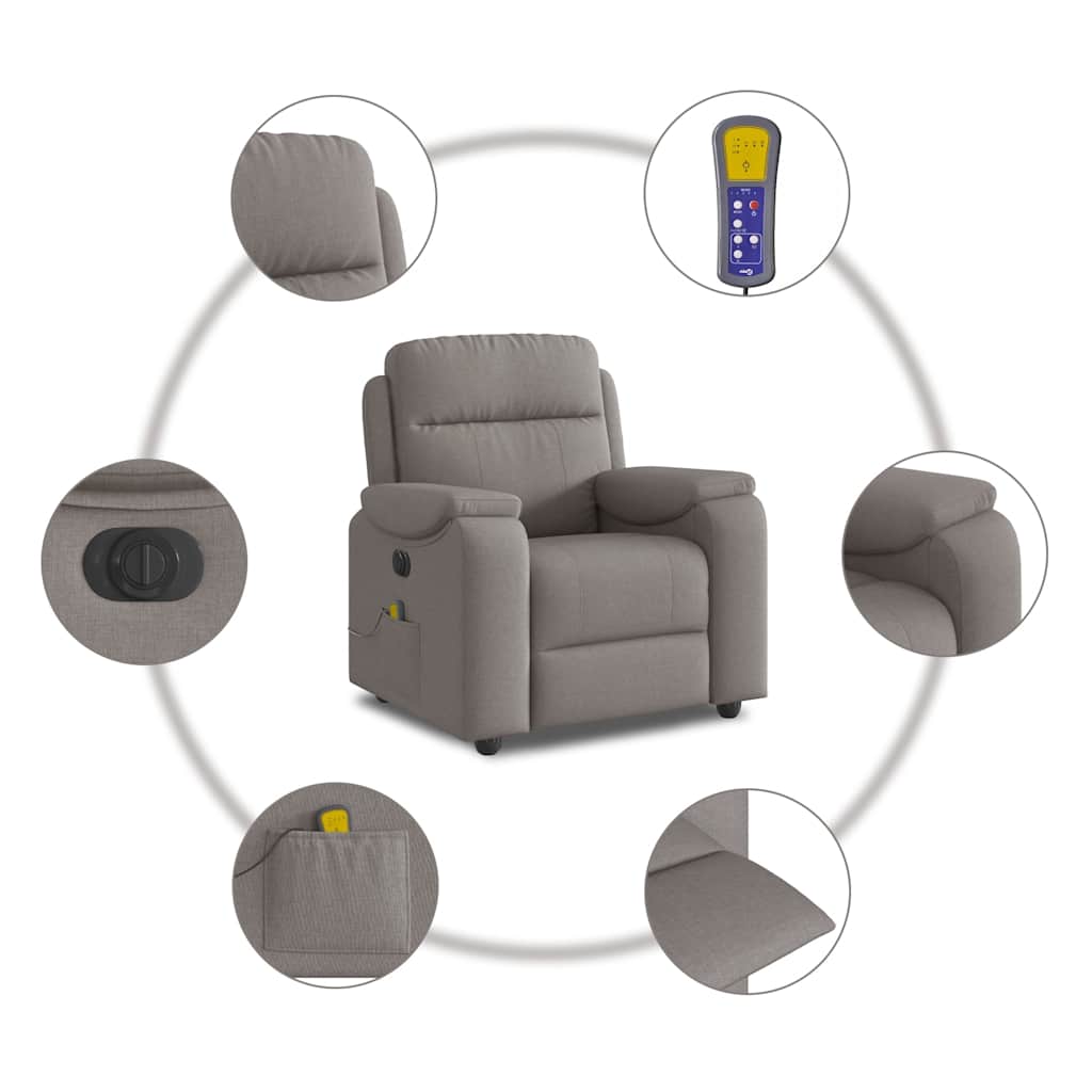 Fotoliu electric de masaj rabatabil, gri taupe, textil