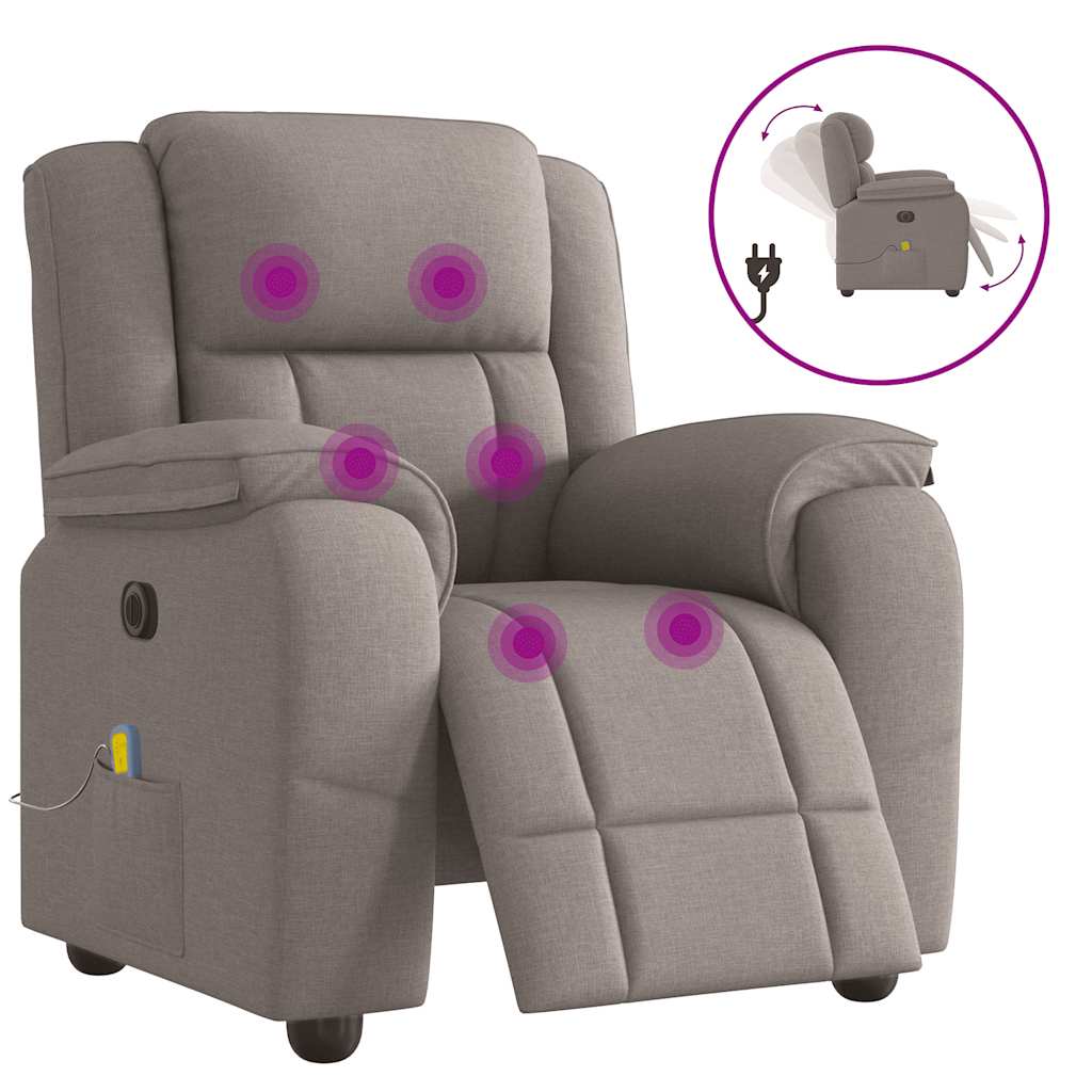 Fotoliu electric de masaj rabatabil, gri taupe, textil