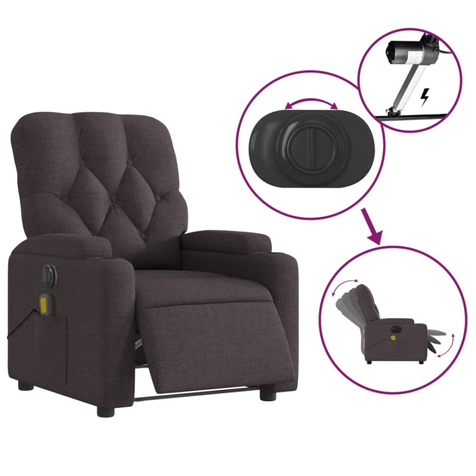 Fotoliu electric de masaj rabatabil, maro închis, textil