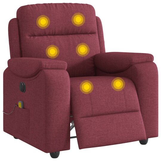 Fotoliu electric de masaj rabatabil, roșu vin, textil