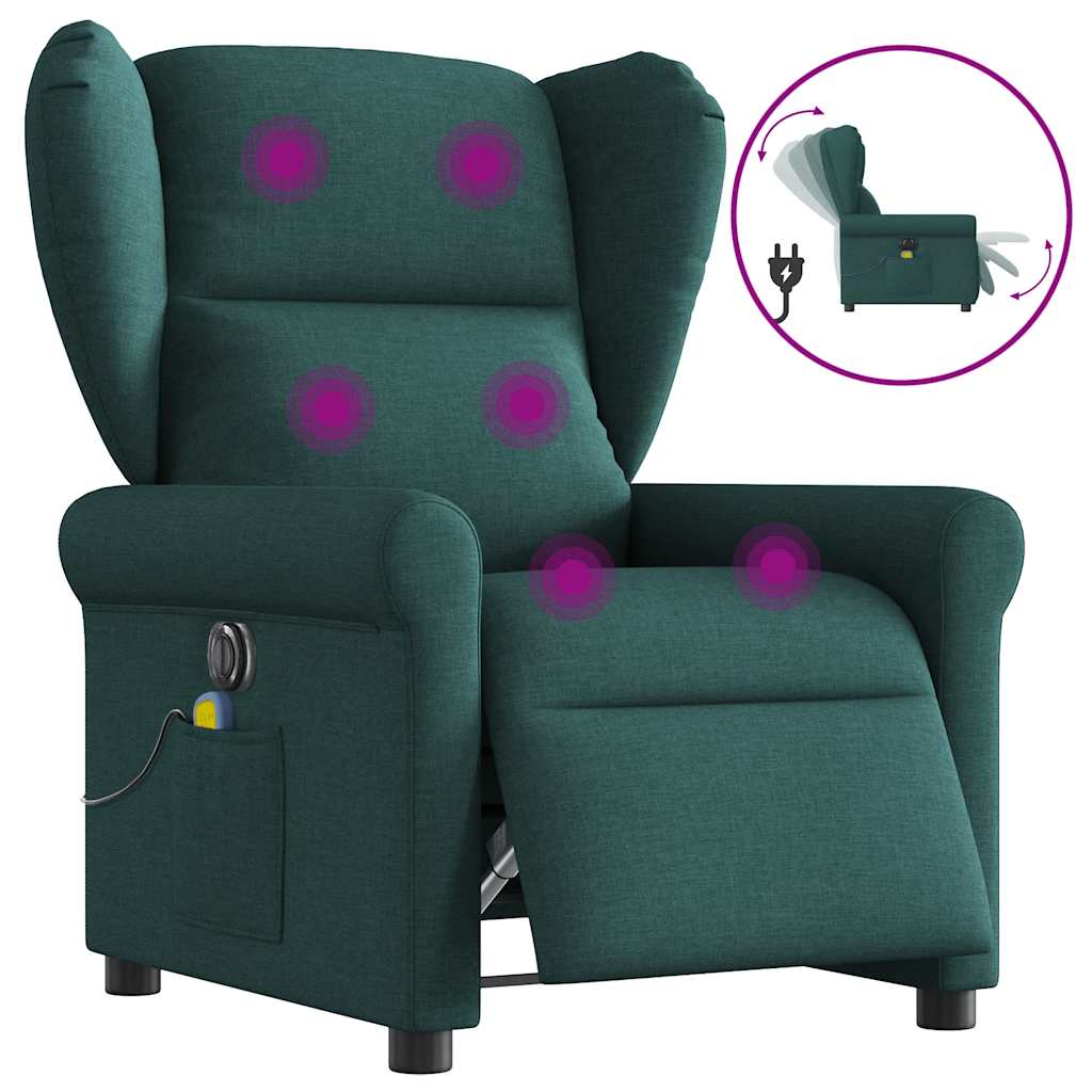 Fotoliu electric de masaj rabatabil, verde închis, textil