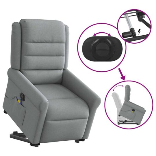 Fotoliu electric masaj rabatabil cu ridicare, gri închis textil