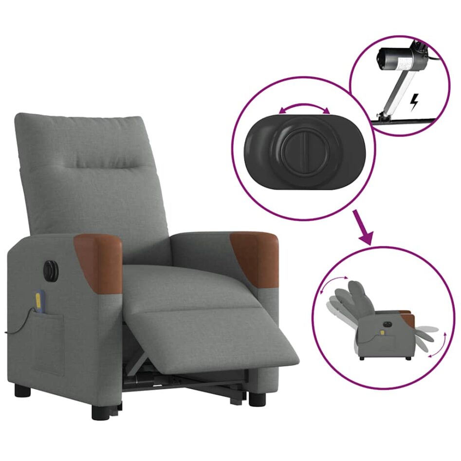 Fotoliu electric masaj rabatabil cu ridicare, gri închis textil