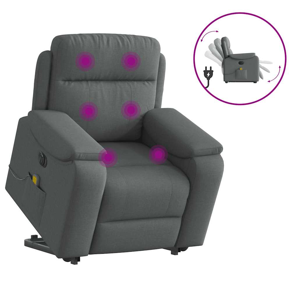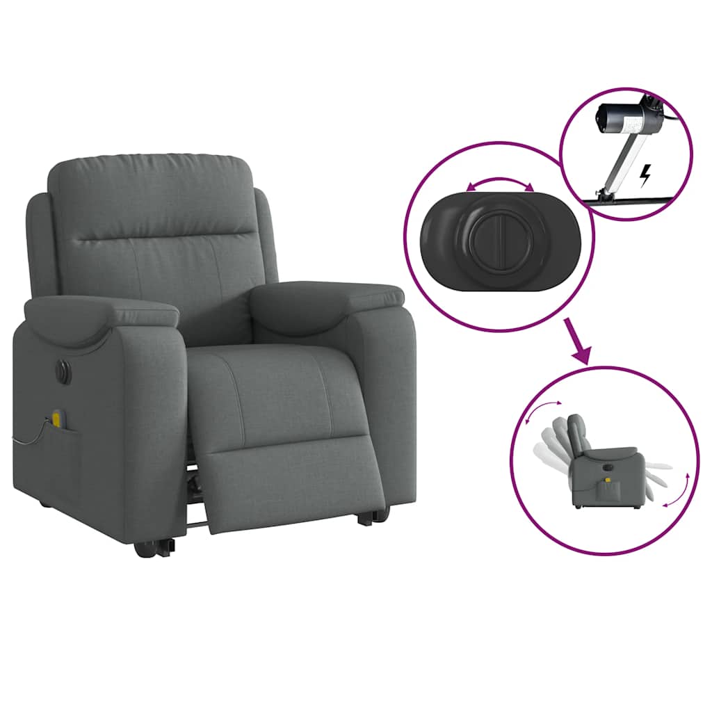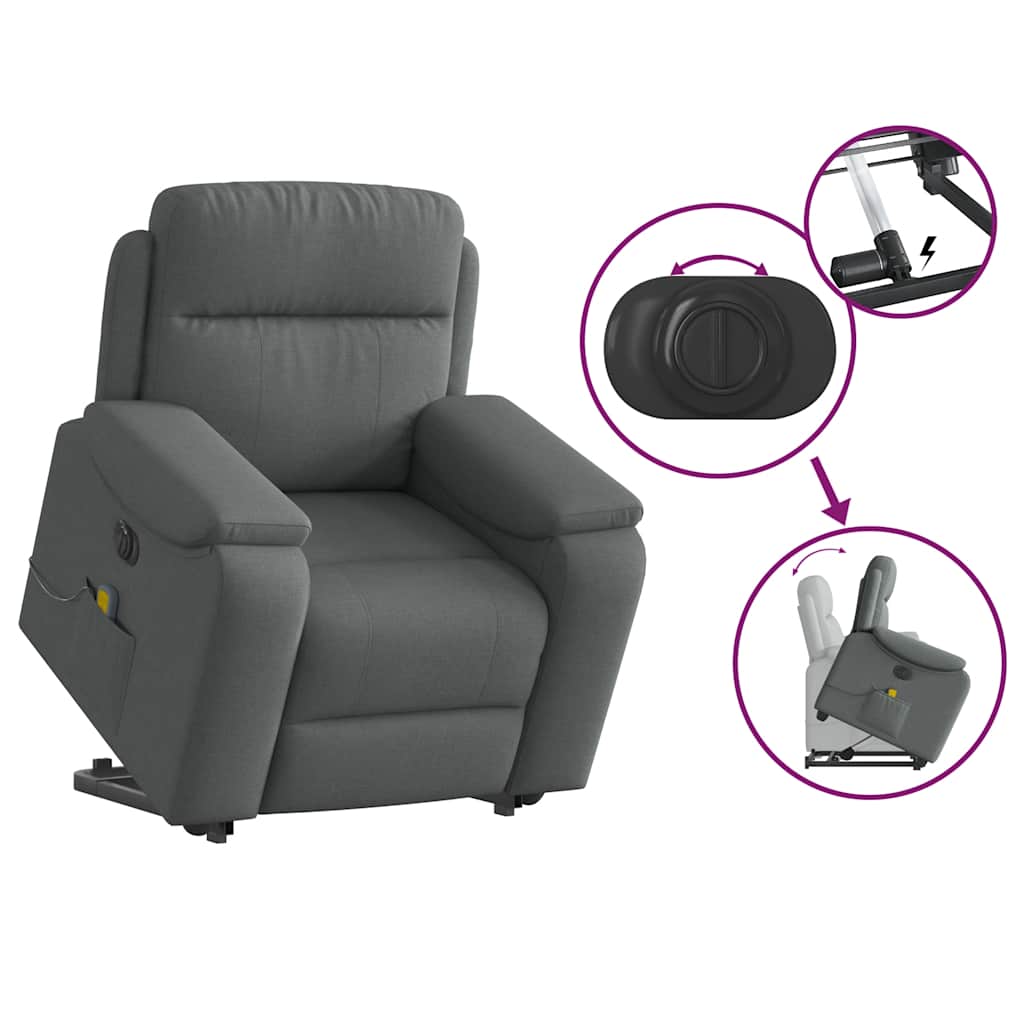 Fotoliu electric masaj rabatabil cu ridicare, gri închis textil