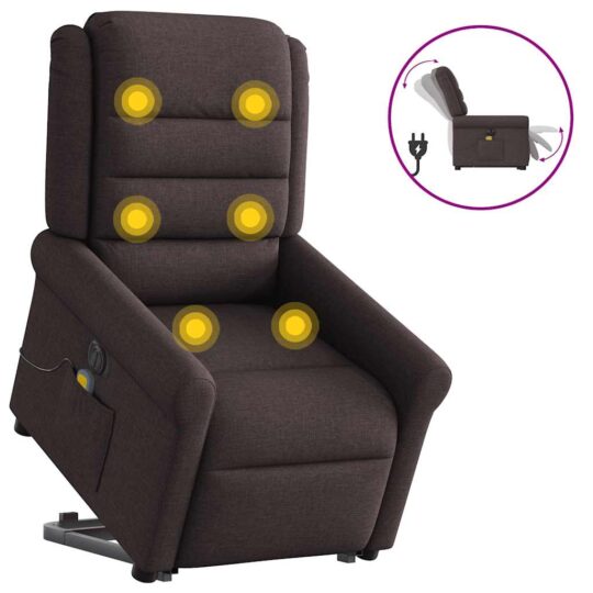 Fotoliu electric masaj rabatabil cu ridicare maro închis textil
