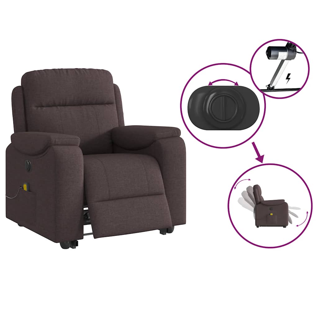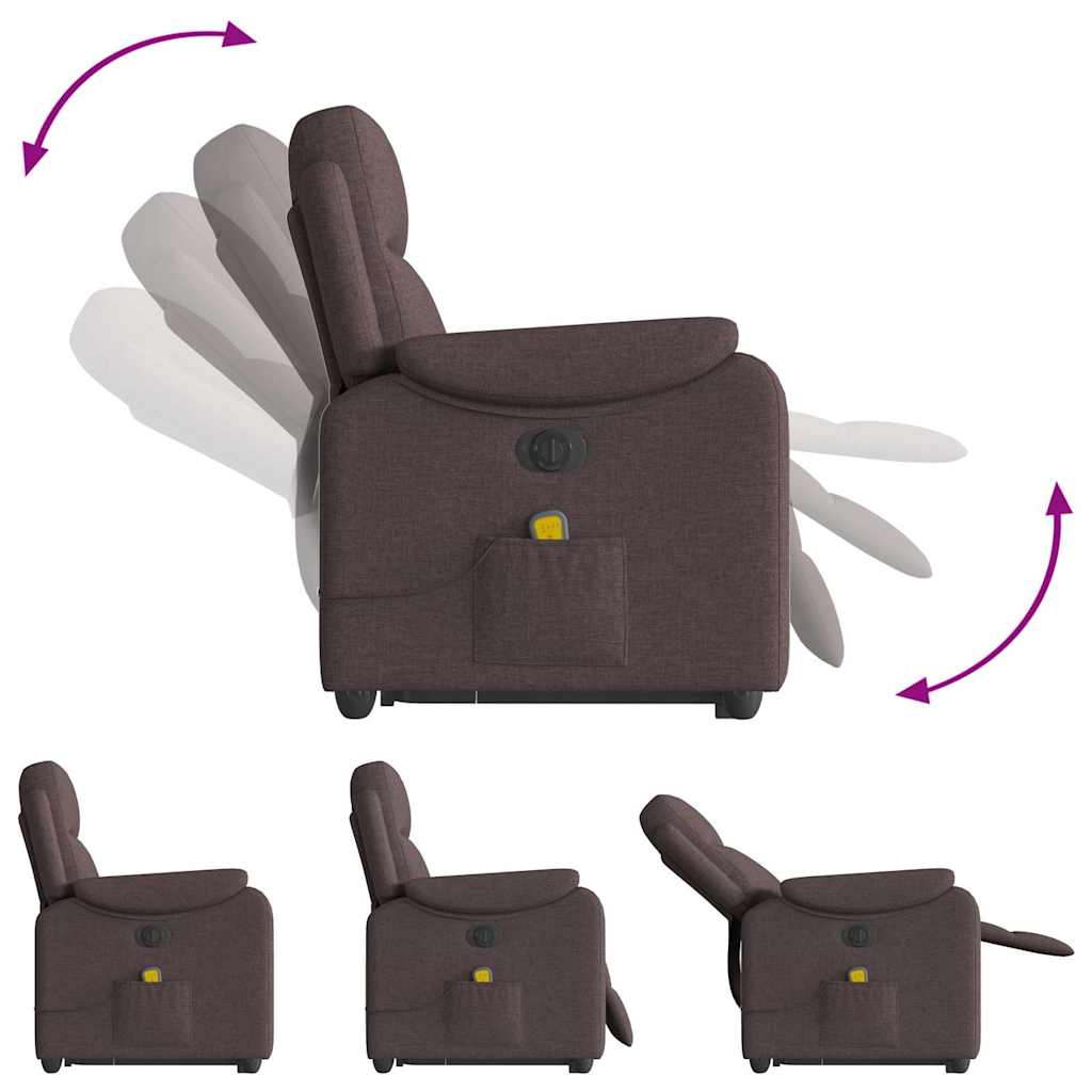 Fotoliu electric masaj rabatabil cu ridicare maro închis textil